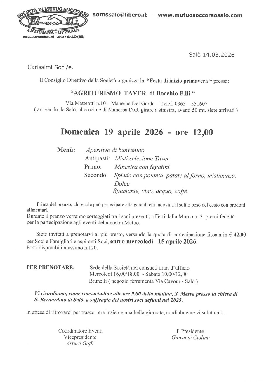 Festa inizio primavera 19.04.2026 - Mutuo Soccorso Salò