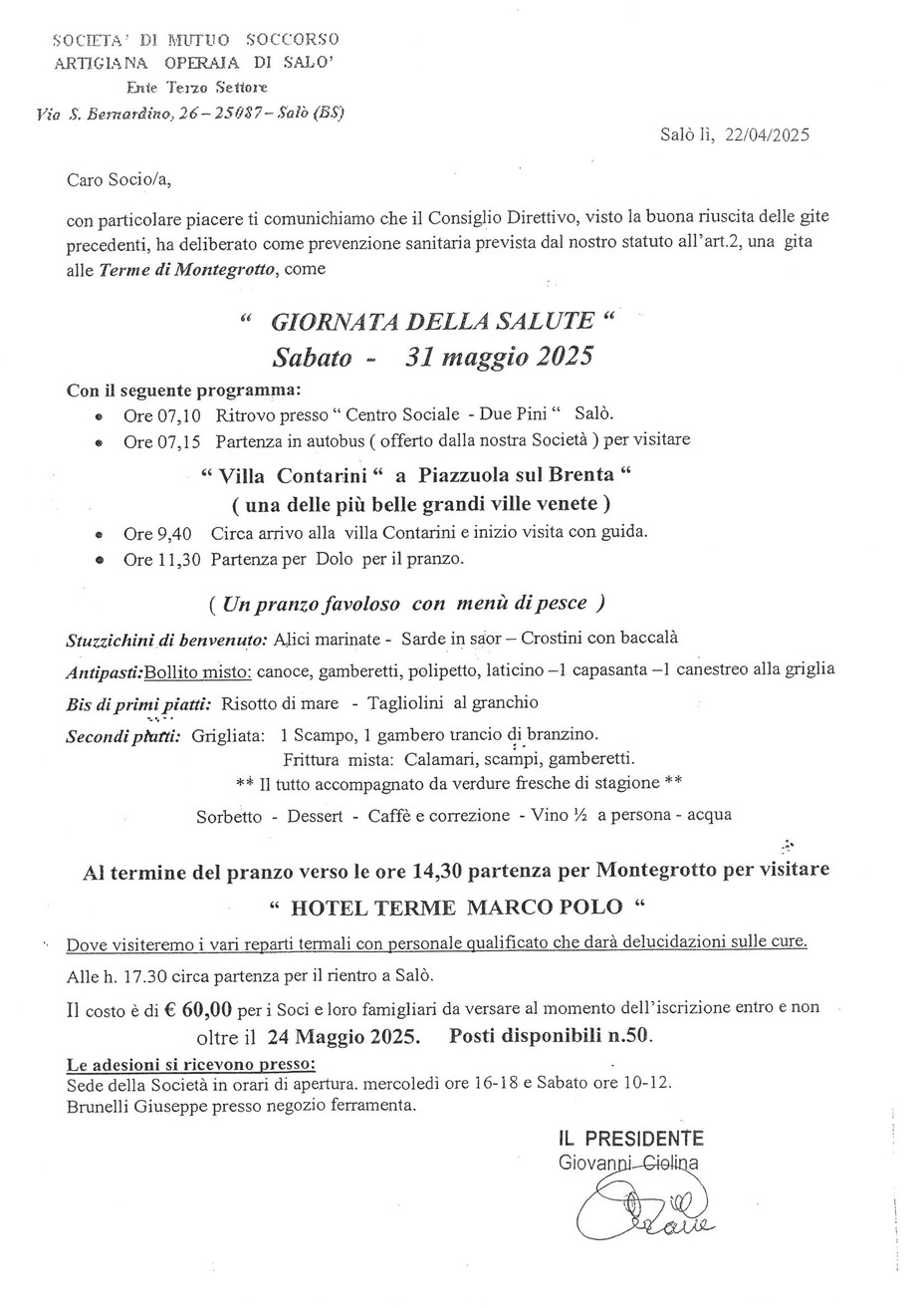 Giornata della salute 31.05.2025 - Mutuo Soccorso Salò