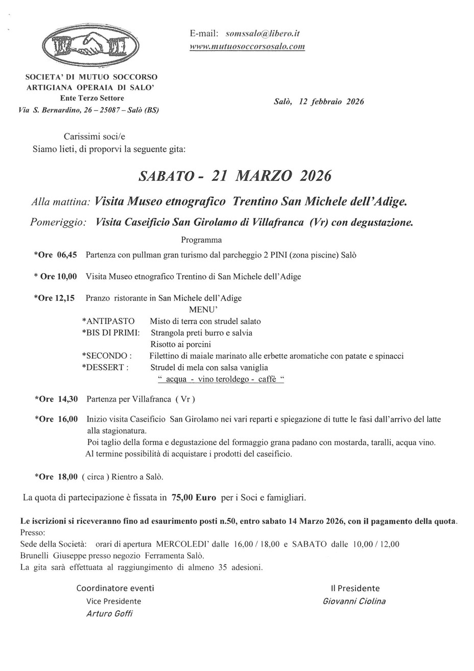 Gita 21.03.2026 - Mutuo Soccorso Salò